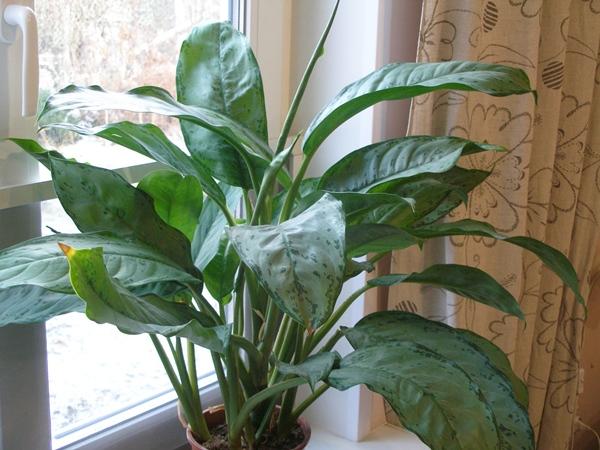 Среди популярных видов выделяется Aglaonema Marantifolium Blum. На светлых и темных участках листвы отчетливо виден голубоватый оттенок.