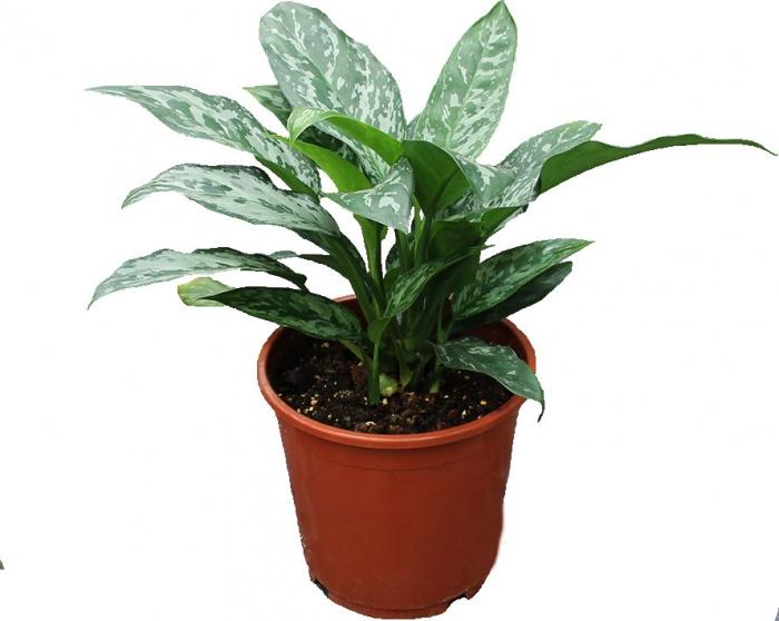 Аглаонема, произрастающая в тропиках Малайзии, представляет собой низкорослое растение. Ее ствол может ветвиться, а на нем располагаются яйцевидные листья с заостренными концами, достигающие длины 20 см и ширины не более 10 см.
