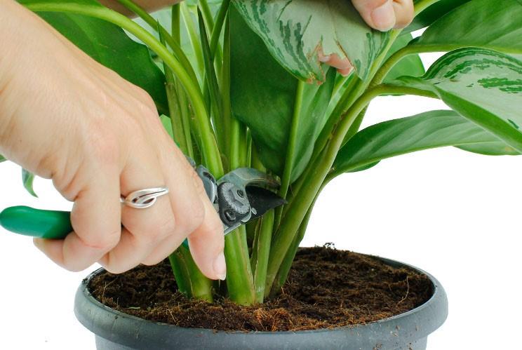 Аглаонема не требует обрезки. С течением времени стебли растения могут оголяться. Если вы отрежете верхушку и обработаете срез порошком древесного или активированного угля, аглаонема начнет активно образовывать боковые побеги. Черенок не стоит выбрасывать, лучше попытаться укоренить его.