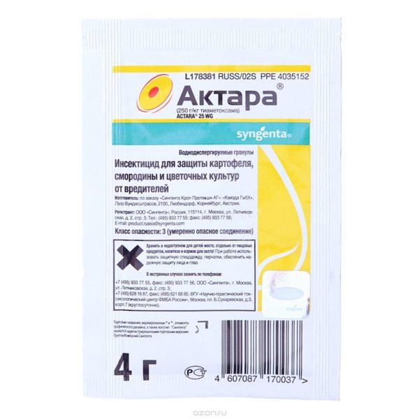 Препарат безопасен для культур и цветов, при условии соблюдения инструкций по применению. Он не проникает в плоды, что делает его безвредным для человека. Актара равномерно распределяется по листьям через сосудистую систему растения.