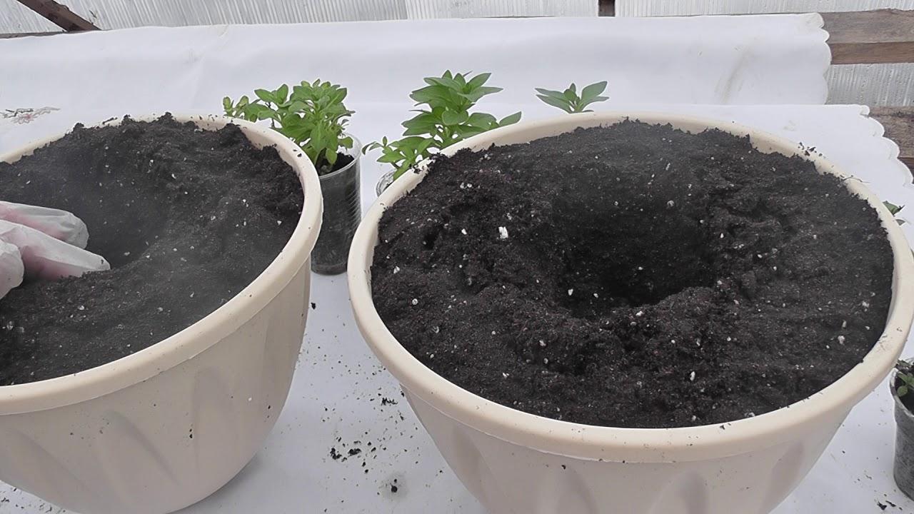 Перед высадкой петуний в кашпо необходимо подготовить подходящую почвосмесь. Поскольку цветение зависит от обильного полива, но не от застоя влаги в корнях, почва должна быть рыхлой и в то же время влажной. Оптимальное сочетание — это две части обычной садовой земли, одна часть песка и одна часть торфа. Для удержания влаги можно добавить гидрогель (предварительно замоченный в воде) или вермикулит. Рыхлость почвы обеспечит перлит. Также можно добавить суперфосфат, который поможет растению адаптироваться к новой почве и обеспечит его питательными веществами для цветения.