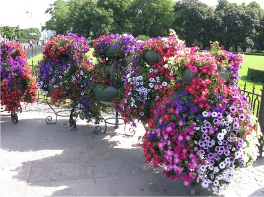 - петуния — настоящая королева ампельных цветов. Ей требуется лишь тепло и солнечный свет, и, хотя это однолетник, садоводы очень ценят ее;