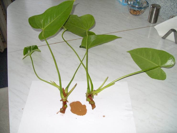 Размножение антуриума возможно следующими способами: делением куста, посевом семян и черенкованием. Черенки можно укоренять в сфагнуме, в готовом субстрате, а также в воде, хотя этот способ укоренения не всем нравится, так как черенки могут загнивать в воде.