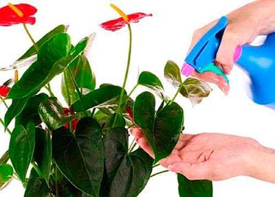 В помещениях, где растут растения из семейства Ароидных, рекомендуется чаще проводить влажную уборку. Для повышения влажности воздуха вокруг антуриума можно использовать мелкий распылитель для опрыскивания, а также аккуратно обмывать листья под теплым душем. Излишки влаги следует удалять с помощью влажной губки или ватного тампона. Кроме того, укладка мха вокруг основания растения способствует увлажнению воздуха.
