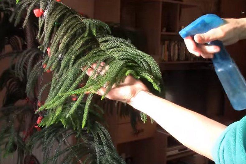Опрыскивание можно проводить по мере необходимости, чтобы удалить пыль с хвои и увеличить уровень влажности в помещении.