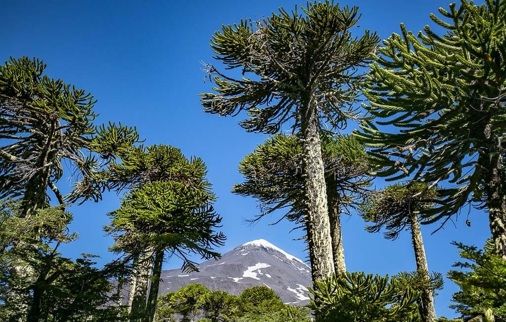 Араукария чилийская. Этот вид можно встретить в Чили и на западе Аргентины. Ствол может достигать высоты до 600 сантиметров, а его окружность составляет полтора метра. Кора толстая и трещиноватая. Обычно нижние ветви касаются земли и отмирают, в то время как боковые ветви собираются в мутовки. У старых растений боковые ветви образуют угол 90 градусов со стволом, а со временем начинают немного свисать. Листовые пластины жесткие и могут колоться. Семена этого растения съедобны.