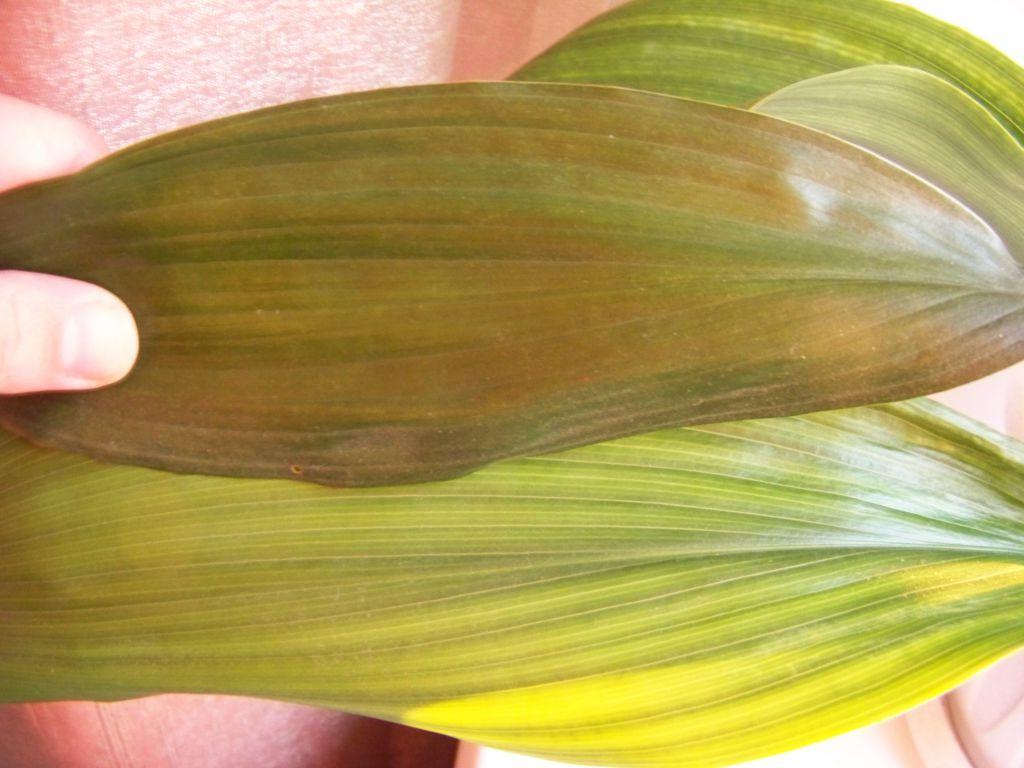 Наиболее часто страдают листья аспидистры: на них появляются пятна, они желтеют, вянут, теряют здоровье и опадают.