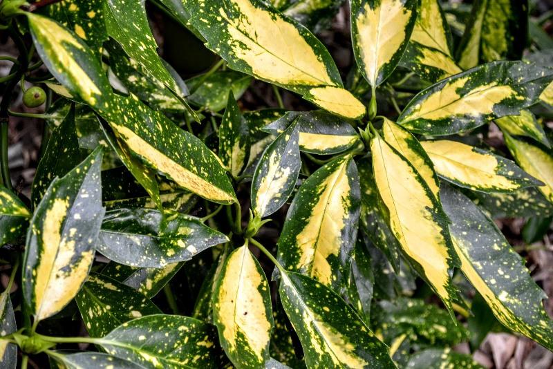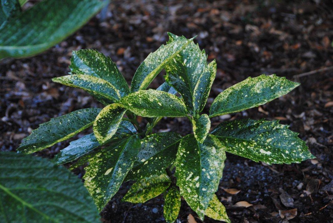 Декоративная листва: Листья аукебы имеют ярко-зеленый цвет с характерными желтыми или белыми пятнами, что придает растению декоративный вид. Эти пятна могут варьироваться в зависимости от сорта, и некоторые из них могут быть очень эффектными, что делает аукебу популярным выбором для украшения интерьеров.