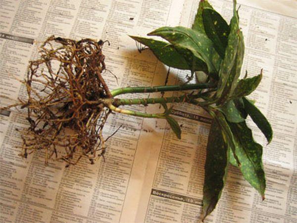 Обратите внимание! Частая пересадка для этого растения не требуется. Если цветок уже взрослый, его можно пересаживать раз в 2-3 года. Учитывайте, что корни аукубы очень тонкие и хрупкие, поэтому необходимо проявлять осторожность во время пересадки.