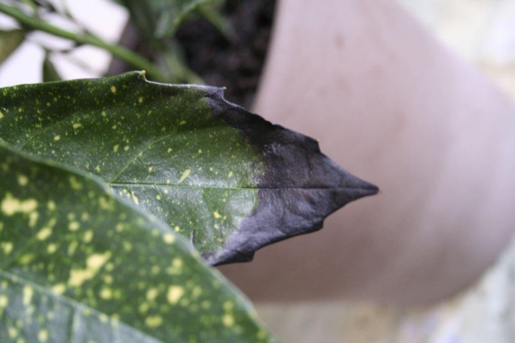 Избыток солнечного света, низкая влажность, недостаточный полив и крайние температуры могут привести к засыханию кончиков листьев у Аукуба японская. Перенаселенные корневые системы и плохая дренажная система в горшках с Аукуба японская могут нагружать растение, что приводит к засыханию кончиков листьев.