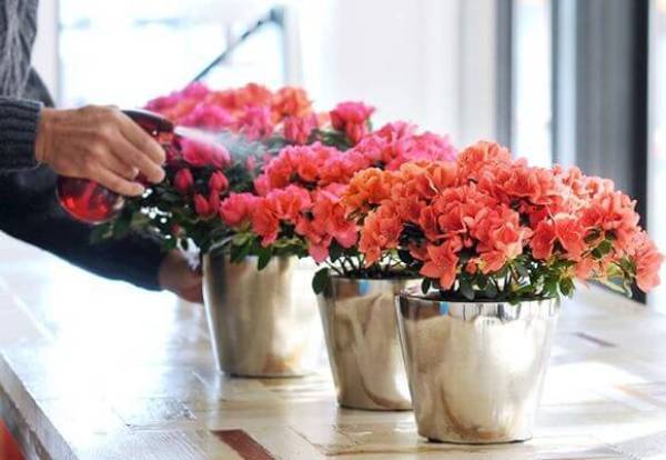 - Обеспечьте обильный полив, яркое рассеянное освещение и поддерживайте температуру воздуха в пределах +12-15 °C. Например, при температуре +20 °C азалия будет цвести всего две недели, тогда как при +12 °C цветение может продолжаться до двух месяцев.