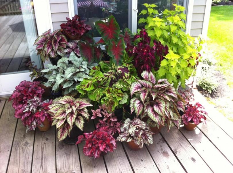 | Листья | Крупные, часто асимметричные, с разнообразной окраской (зеленые, красные, серебристые, бордовые), узорами и текстурой | Обычно менее выразительные, однотонные, служат фоном для цветов |