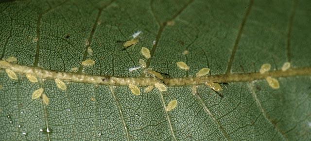 Паутинный клещ проявляется на верхней стороне листьев в виде мелких желтых точек, которые постепенно объединяются в большие пятна. На нижней части листа можно заметить паутинку, заполненную крошечными насекомыми. Эти клещи предпочитают теплую и сухую атмосферу. Как только листья начинают желтеть, необходимо немедленно обработать их мыльным раствором, удалить насекомых и протереть минеральным маслом. Также важно установить оптимальные условия влажности и температуры.