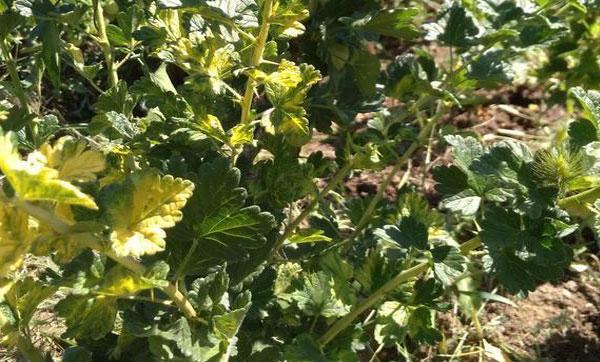 - пожелтение, скручивание и высыхание листьев крыжовника;