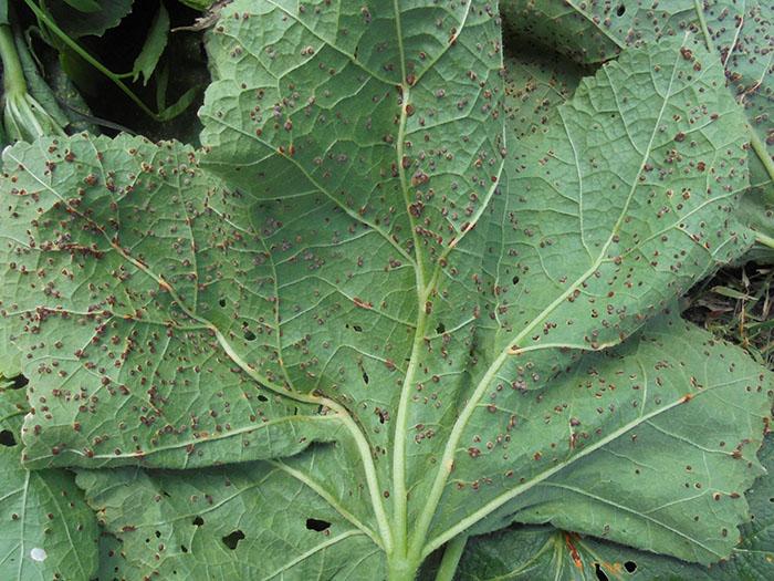 Почему у мальвы появляются ржавые листья? На них формируются темные бархатистые подушечки с грибными спорами, что приводит к образованию желто-коричневых пятен, напоминающих ржавчину.