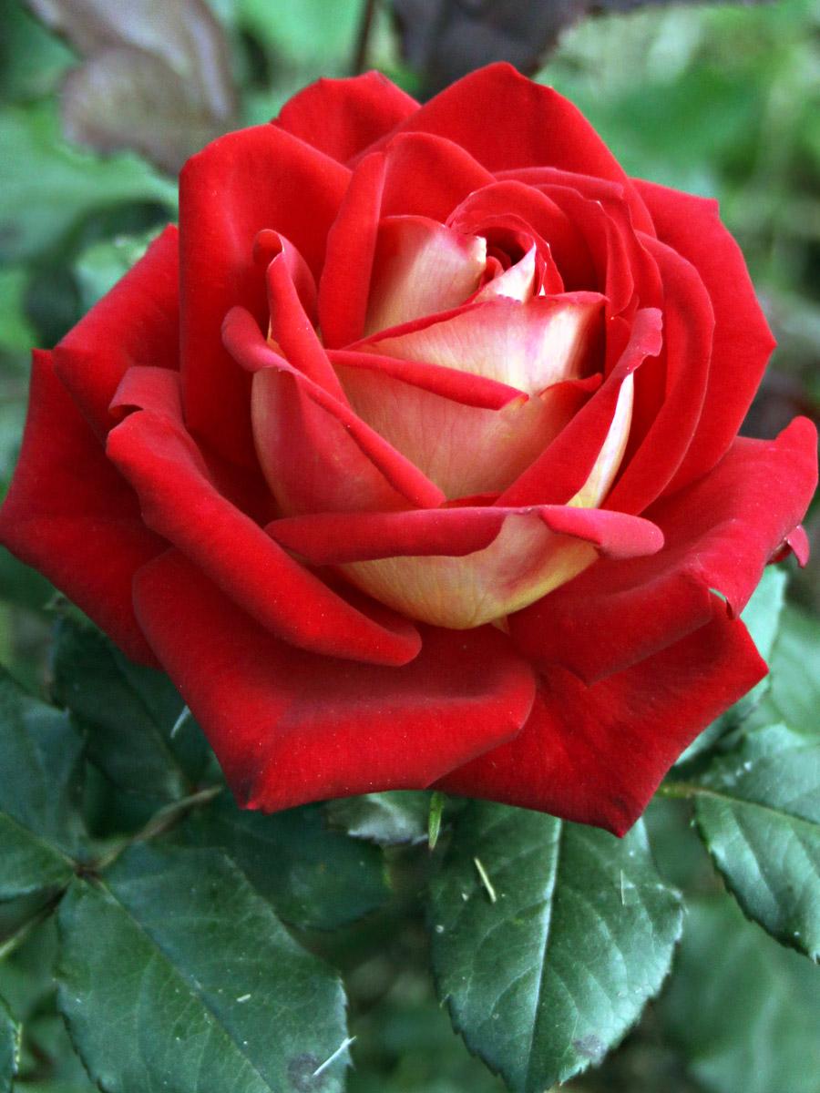 Кусты роз обильно усыпаны темно-зелеными листьями. Период цветения продолжается до первых морозов.