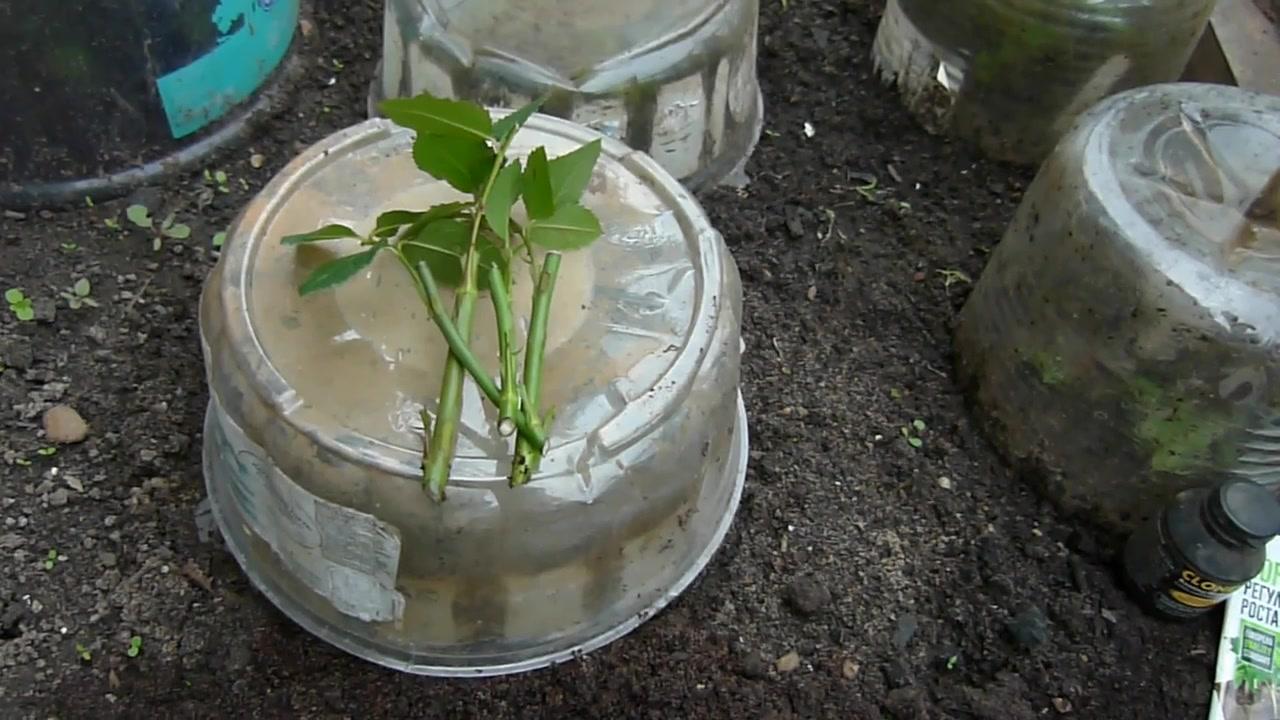 В завершение процесса размножения черенками необходимо провести обильный полив. На зиму будущие кусты укрывают банками с отверстиями, засыпают листвой и накрывают нетканым материалом.