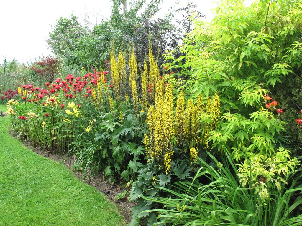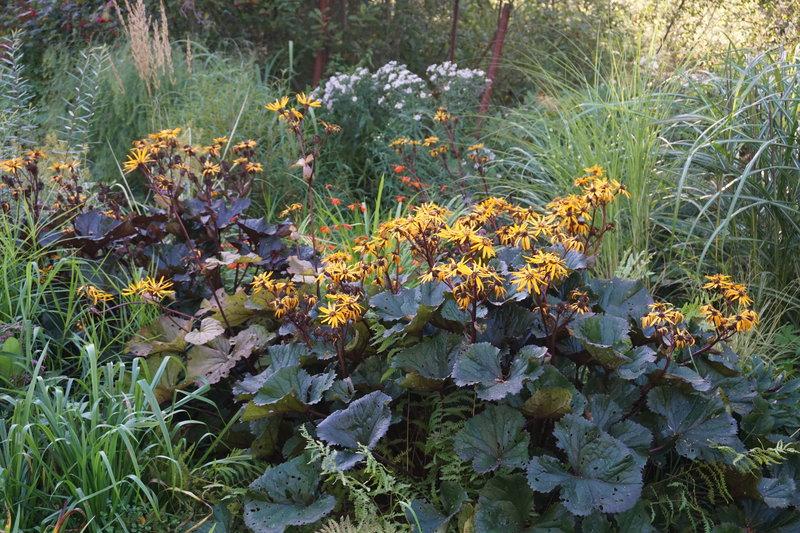 Бузульник вырастает достаточно высоким, поэтому его рекомендуется сажать рядом с различными ограждениями, чтобы его ветви не ломались под воздействием ветра. На фоне бузульника великолепно будут смотреться цветы меньшего размера и других оттенков.