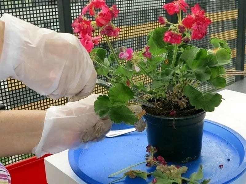 - Обрезка: После периода активного цветения рекомендуется проводить обрезку герани. Удаление увядших цветов и старых листьев способствует улучшению циркуляции воздуха и стимулирует рост новых побегов. Обрезку лучше всего проводить весной.