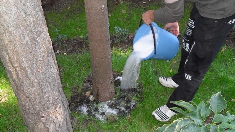 Перед внесением удобрения рекомендуется вырыть неглубокую канавку в приствольном круге. В нее аккуратно заливают приготовленный раствор, а затем засыпают канавку землей. Подкормку лучше всего проводить в солнечную и безветренную погоду.