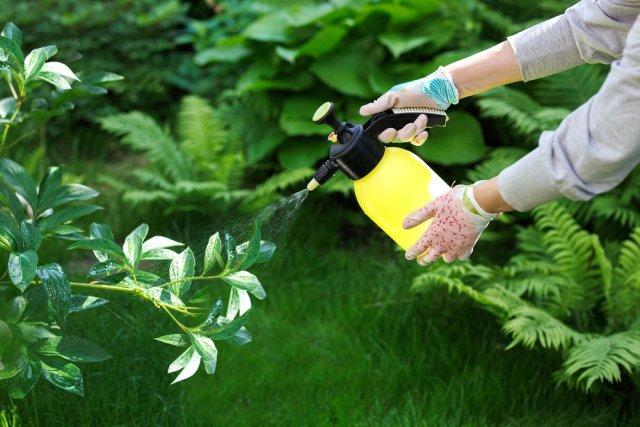 Важно! Многие удобрения можно наносить на кусты с помощью пульверизатора. Однако при использовании мыльных составов рекомендуется опрыскивать пионы кисточкой с длинным ворсом.