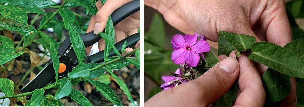 Вторая половина июля — лучшее время для размножения флоксов методом черенкования. Из высокорослых видов черенками хорошо размножаются флоксы метельчатый, пятнистый и Арендса. Черенкуют только собирающиеся цвести и цветущие флоксы.