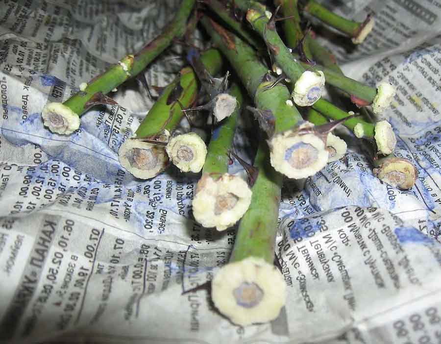 Метод укоренения роз с использованием бурито аналогичен этому процессу — нарезанные черенки помещаются в газету или бумагу. Важно, чтобы бумажная «лепешка» была влажной. Это создает оптимальные условия для появления сначала каллуса, а затем и корней на веточках.