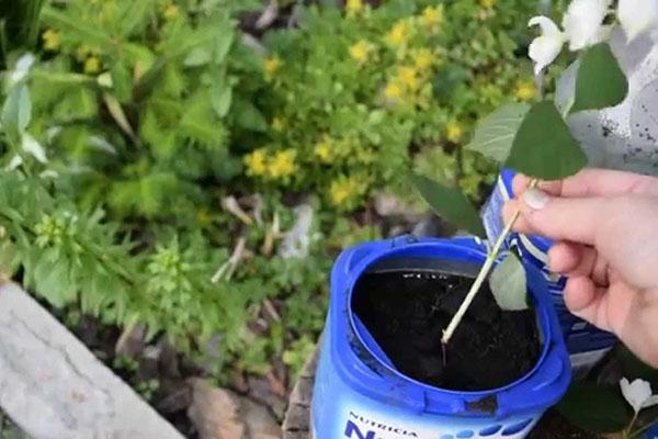 Согласно рекомендациям опытных садоводов, процесс укоренения черенков можно осуществить следующим образом. У крепких однолетних побегов аккуратно обрезаем верхушки, не превышающие 15 см. Удаляем все нижние листья с черенков. Затем помещаем их в стаканчики, заполненные рыхлыми природными материалами. Сверху накрываем конструкцией из обычной пластиковой бутылки. Не забывайте регулярно поливать, проветривать и тщательно опрыскивать черенки. Как только на черенках появятся зеленые листочки, можно приступать к пересадке.