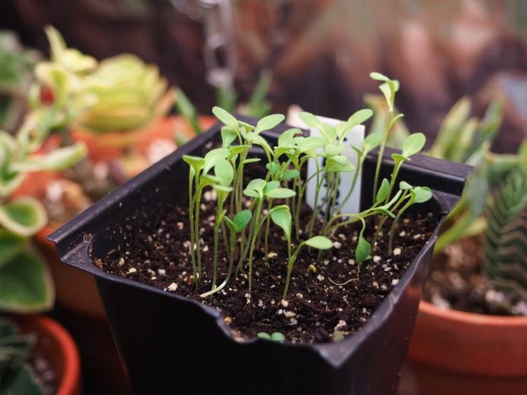 - когда у сеянцев появится третья пара листьев, их рассаживают на расстоянии примерно 10 см друг от друга;