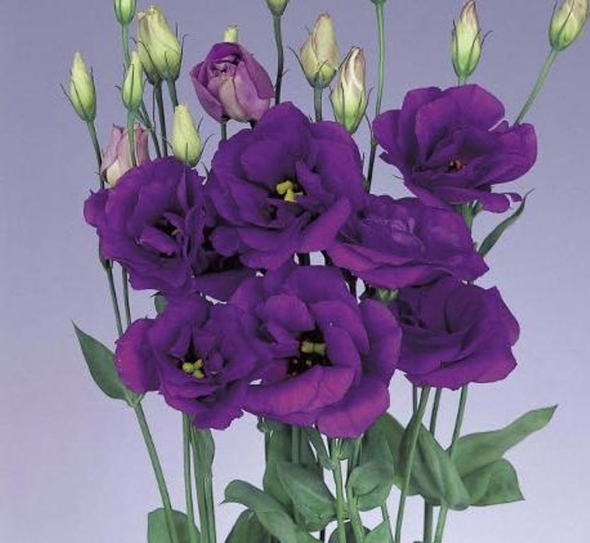 Сорта эустомы выделяются лепестками различных оттенков: лилового, синего, голубого и фиолетового. Они отличаются высокой ростом, и некоторые крупные экземпляры могут достигать высоты до 80 сантиметров.