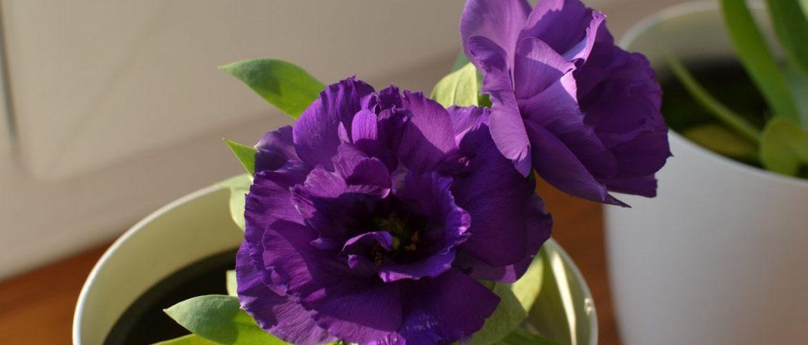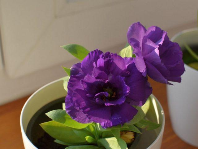Сорта низкорослой эустомы прекрасно подходят для домашнего выращивания. Эти растения компактны и достигают высоты не более 20 см. Средний диаметр их цветков составляет около 5 см, что создает эффектный контраст на фоне маленького куста в горшке.