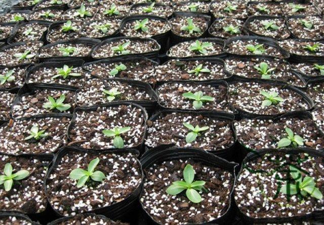 Рассада развивается медленно. Пикирование следует проводить после появления трех пар листьев. Маленькие растения пересаживают в отдельные горшочки, где они продолжают расти.