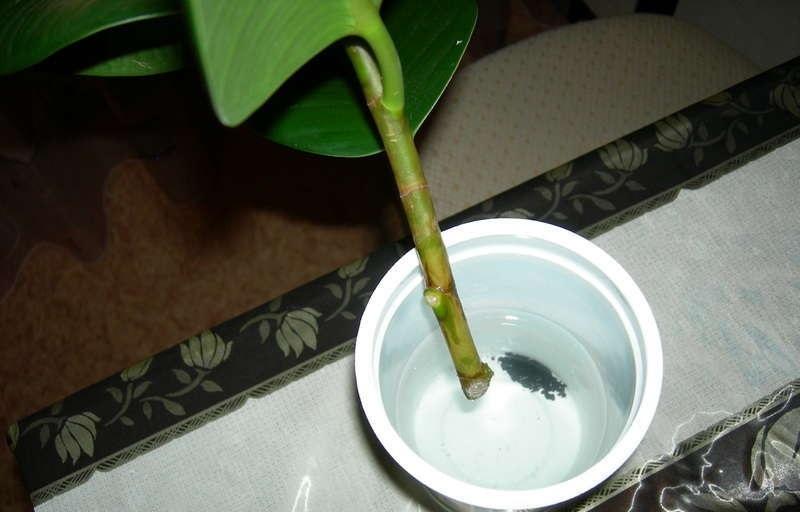 Листовая пластина срезается вместе с частью побега, после чего обрезок помещается в сосуд с чистой водой или оборачивается во влажную вату.