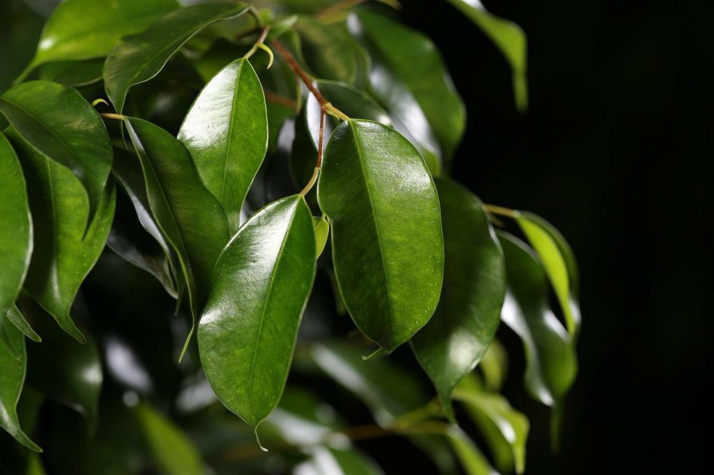 Эффектные фикусы, такие как Бенджамин и Даниэль, обладают привлекательными темно-зелеными листьями, достигающими длины до 8 см. Эти растения не требуют сложного ухода: им необходим яркий, но рассеянный свет, а также легкая тень в летний период. Для их роста подойдет рыхлый и питательный грунт. Полив следует осуществлять умеренно, избегая застоя влаги в горшке.