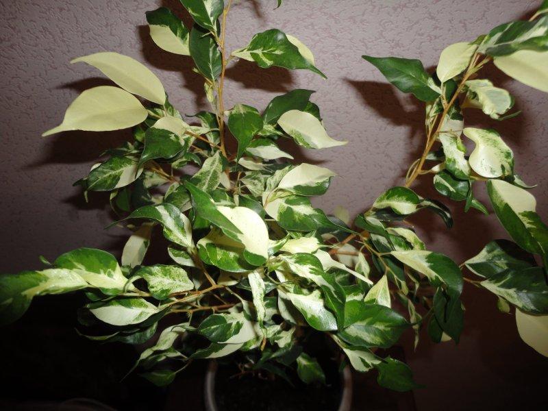 | Пестролистные | Фикус Бенджамина ‘Starlight’ | Мелкие, зеленые с белыми или кремовыми пятнами и каймой. |