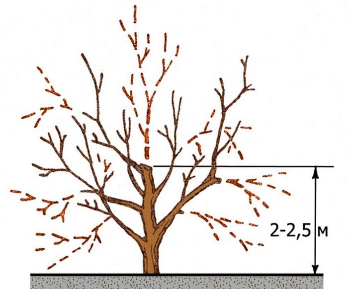 Схема омолаживающей обрезки старого дерева с ограничением высоты