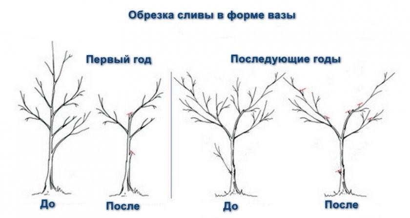 Схема обрезки сливы весной