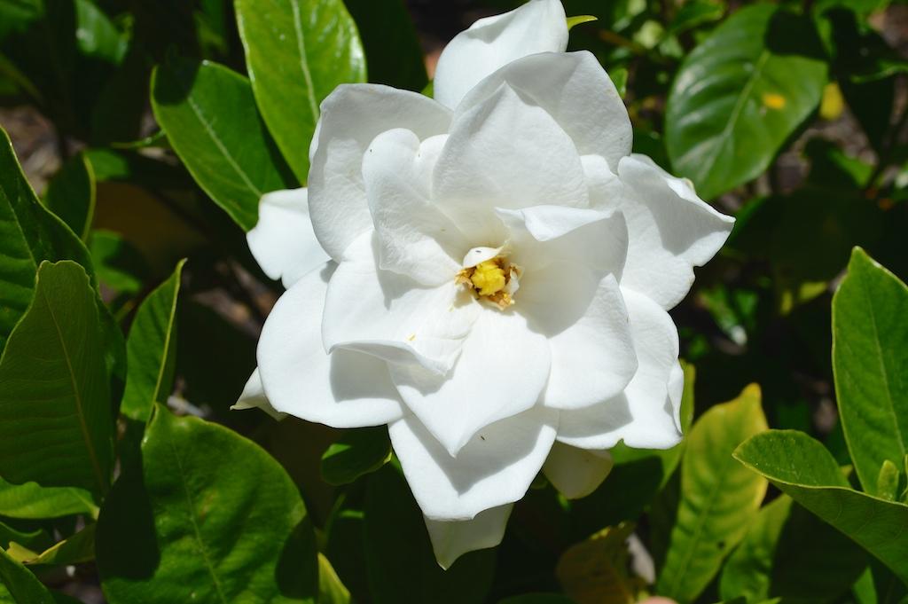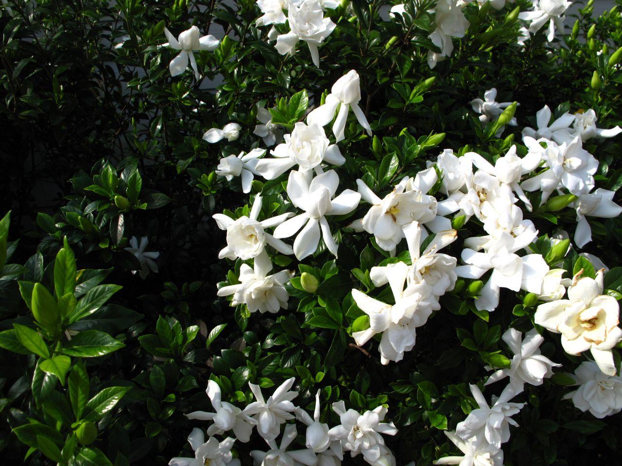 Этот крупный кустарник отличается сильно разветвленными ветвями и круглыми блестящими листьями. Во время цветения он радует глаз множеством мелких махровых цветов, диаметр которых не превышает 3 см, белоснежного оттенка. Гардения также известна своим насыщенным и приятным ароматом.