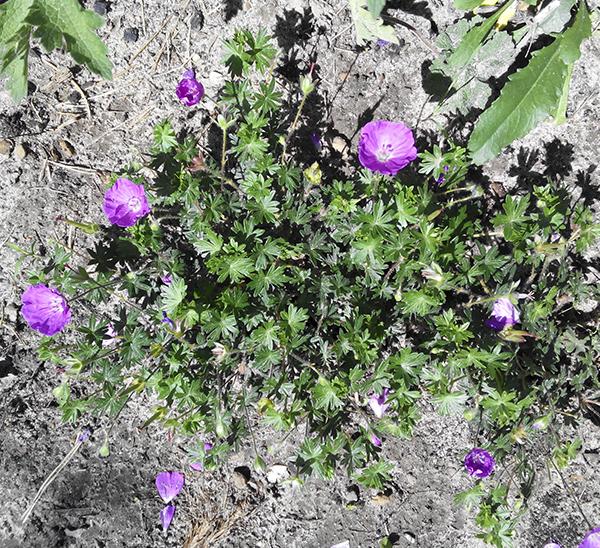 Почвопокровная герань характеризуется тонкими корнями и изящными рассеченными листьями с небольшими черешками.
