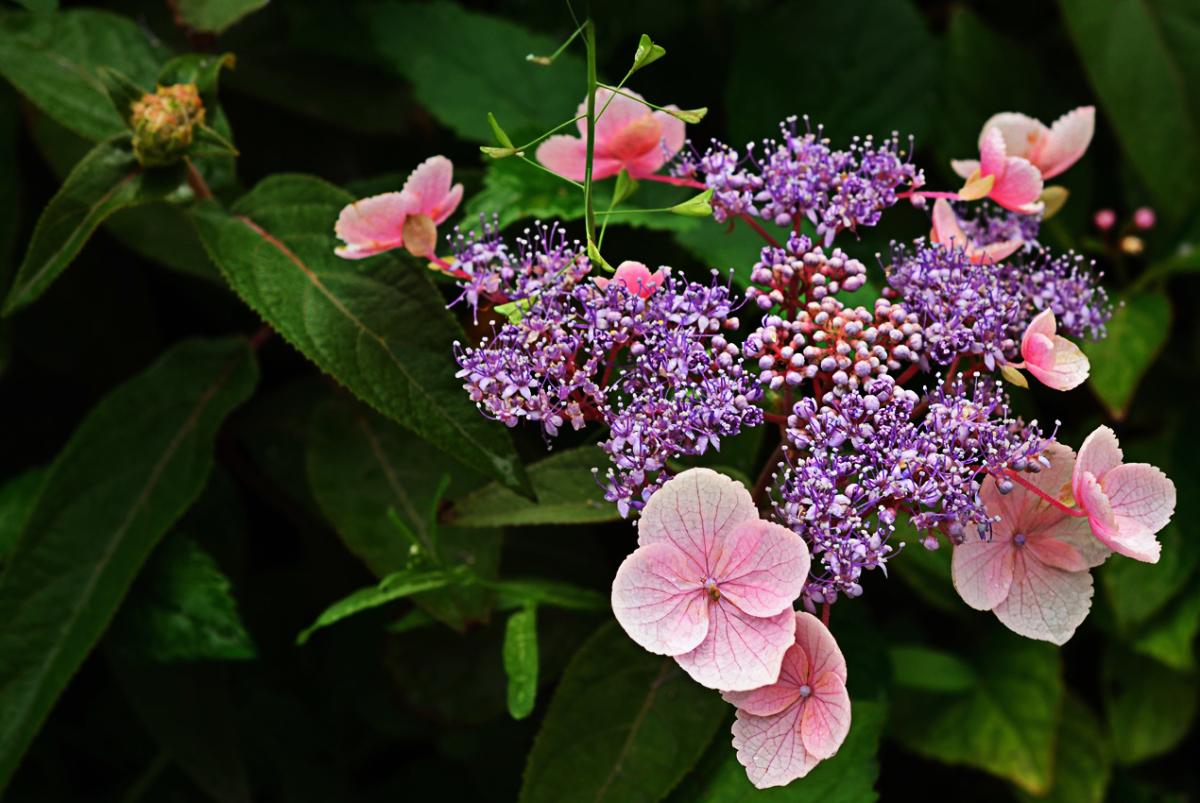Гортензия шершавая (aspera) – разновидность гортензии с эффектными бархатными листьями. Куст достигает 2 м в высоту в зависимости от сорта. Цветки интересных бело-розовых и сиренево-синих оттенков собраны в крупные щитки.