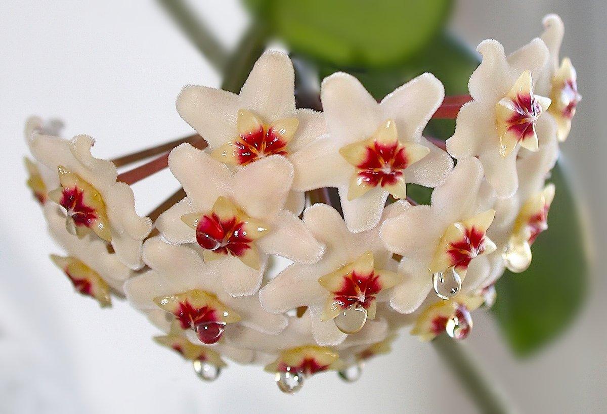 Секреты цветения: Хойи цветут только при правильном уходе и условиях. Чтобы стимулировать цветение, важно обеспечить растению достаточное количество света и не пересаживать его слишком часто. Цветы хойи имеют восковую текстуру и могут издавать сладкий аромат, что делает их особенно привлекательными.