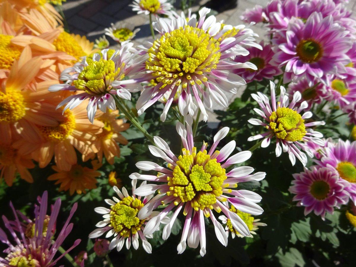Высокие сорта разноцветных хризантем, напоминающих ромашки, обычно применяются для оформления центральных зон клумб, в то время как низкорослые кустики прекрасно смотрятся вдоль дорожек и бордюров. Эти цветы отлично соседствуют с колеусом, бархатцами и хвойными растениями.