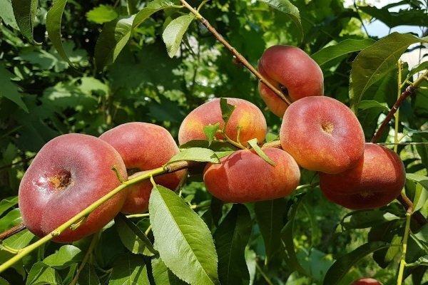 - Сорт Никитский плоский – хорошо адаптирован к суровым условиям, что позволяет ему успешно расти в России. Дерево невысокое и раскидистое, что обеспечивает легкий доступ ко всем плодам. Вес персиков составляет 100-120 г.