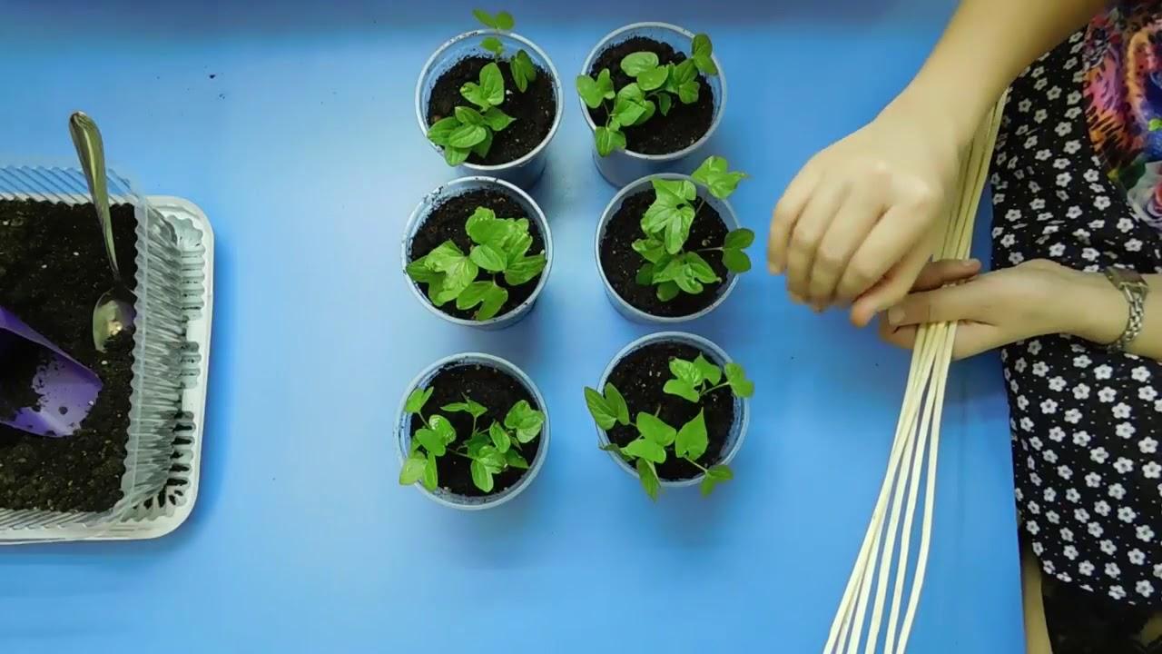 Рассада, скорее всего, не зацветет в торфяных горшках, но начнет активно расти почти сразу. Спустя неделю после появления всходов необходимо сразу установить опоры. Если саженцы переплетутся, распутать их перед высадкой будет невозможно.