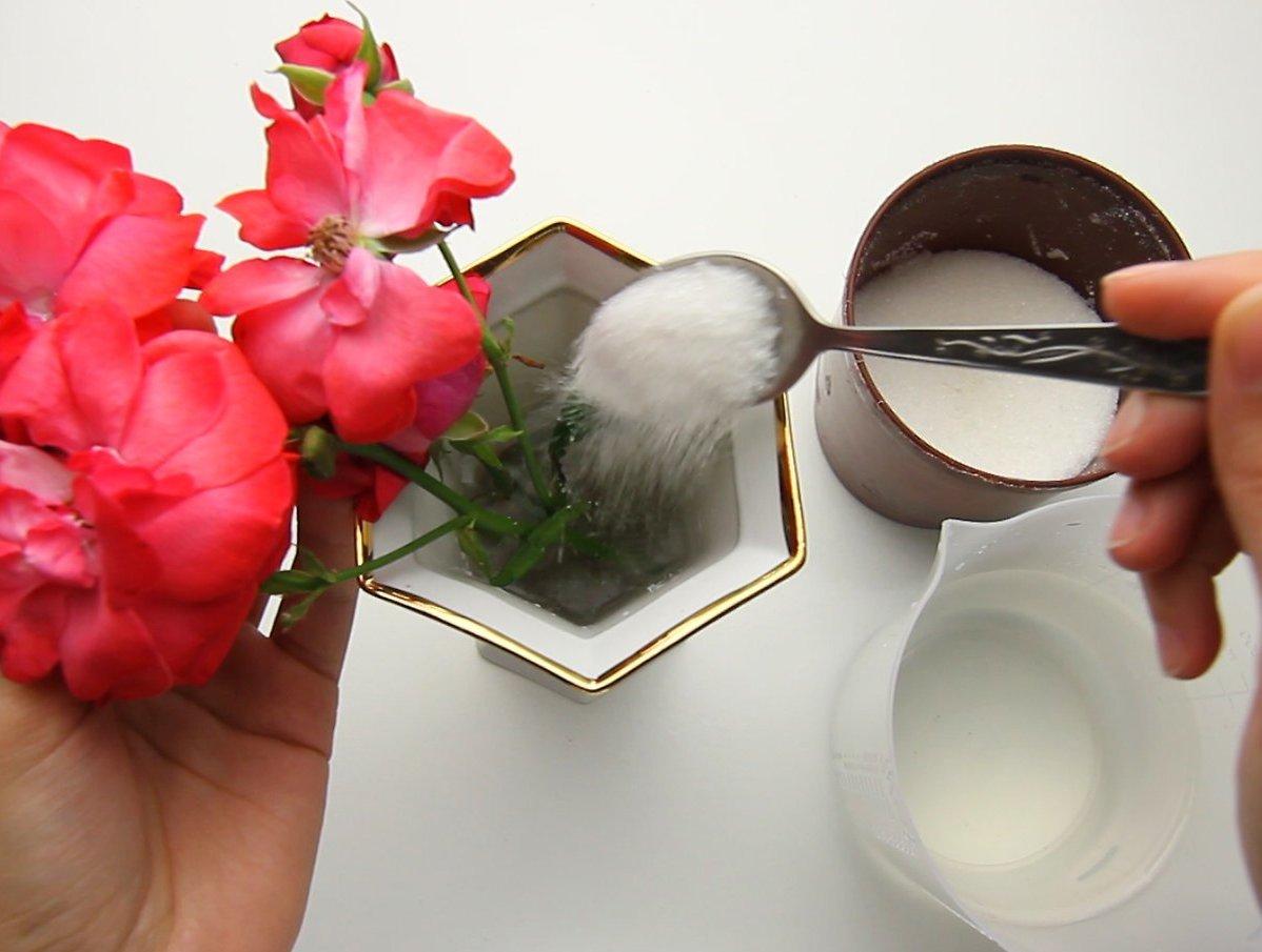 Теплая вода и сахар: Один из простых способов вернуть жизнь завявшим розам — это использовать теплую воду с добавлением сахара. Сахар служит источником энергии для цветов, а теплая вода помогает быстрее проникнуть в стебли, улучшая водоснабжение.