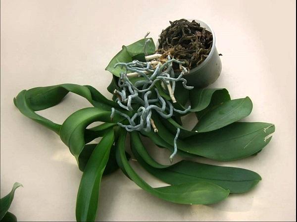 - корни орхидеи начали гнить из-за чрезмерного полива;