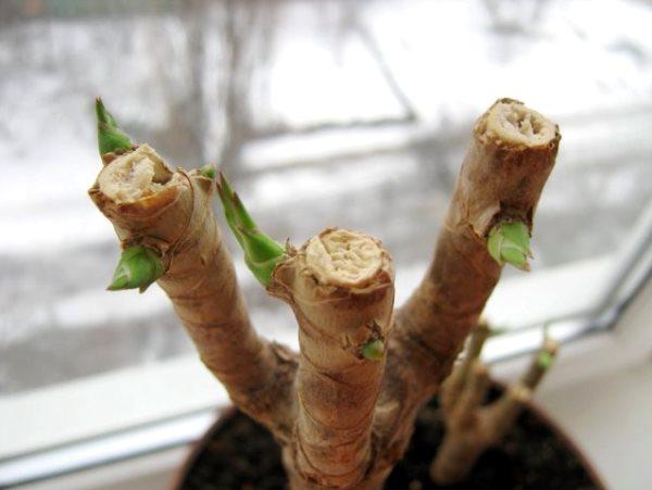 Срезанный ствол можно использовать для черенкования и укоренения. Верхнюю часть также можно посадить в новый горшок.