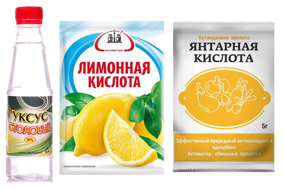 | Способ подкисления | Используемое вещество | Пропорции и применение |
