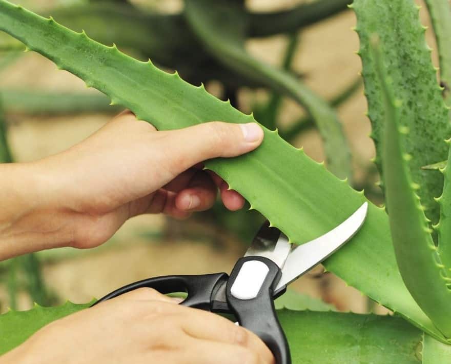 - Выберите здоровый лист алоэ и аккуратно отрежьте его острым ножом.