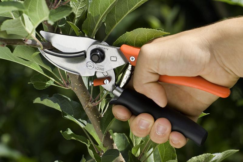 - Секатор с наковаленкой. Он предназначен для обрезки старых сухих веток, что может оказаться полезным в процессе прививки.